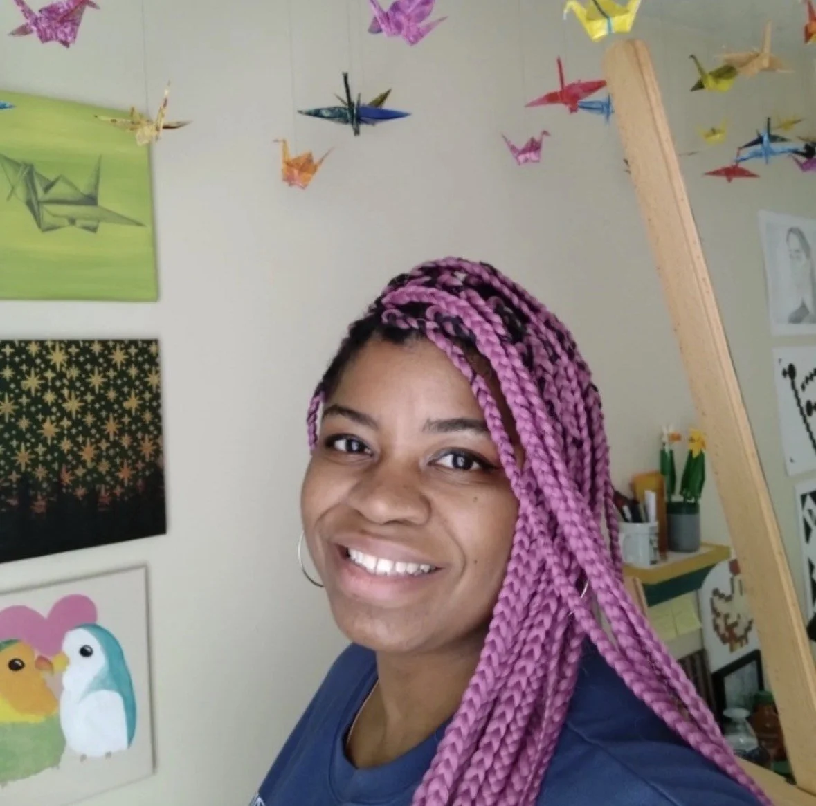 I love that creating artwork gives me the chance to express my joy, pain, and everything in between. I hope that through my work, people can see both me and themselves reflected in the layers of paint that turn a blank canvas into a conversation.